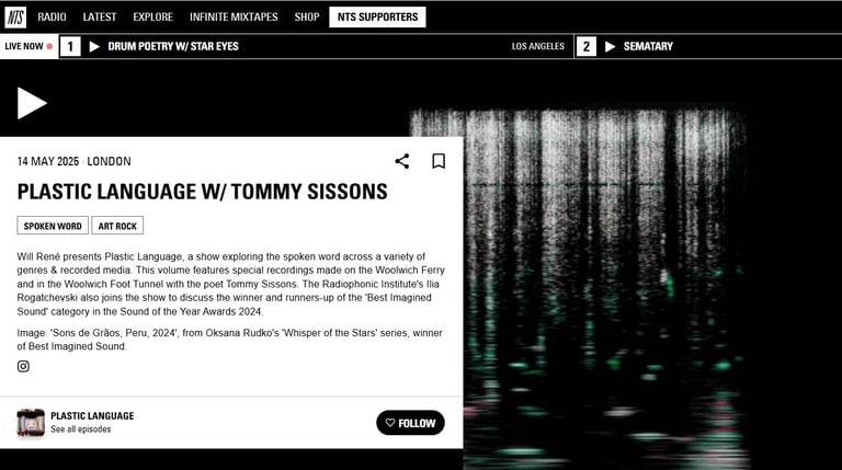 PLASTIC LANGUAGE W/TOMMY SISSONS, vol. 16, 14/05/2025, ch. 1 NTS RADIO